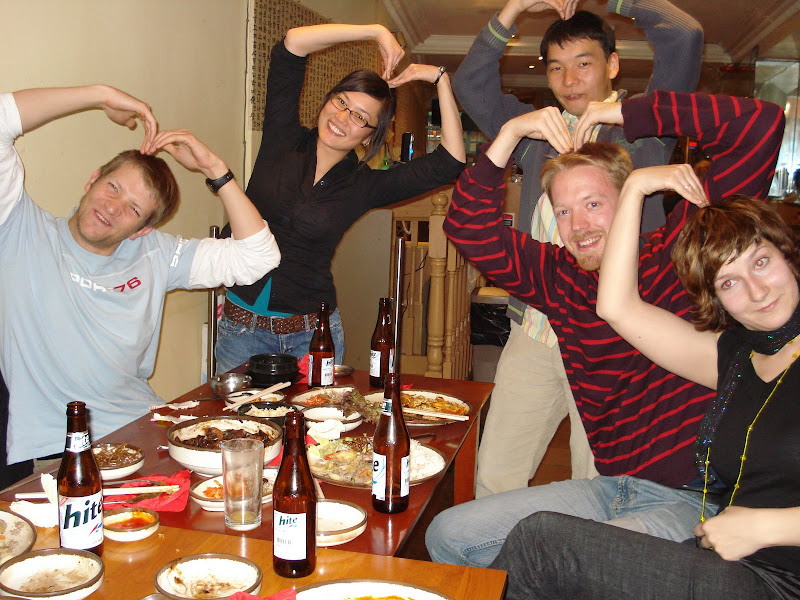 Первый раз пробовал корейскую кухню. Со мной на фото все новички компании, плюс парень одной из них (она в чёрном слева), который по воле случае работает в конкурирующей компании (он слева). Справа рядом со мной один из моих друзей здесь Лари их Хельсинки. Было очень весело.